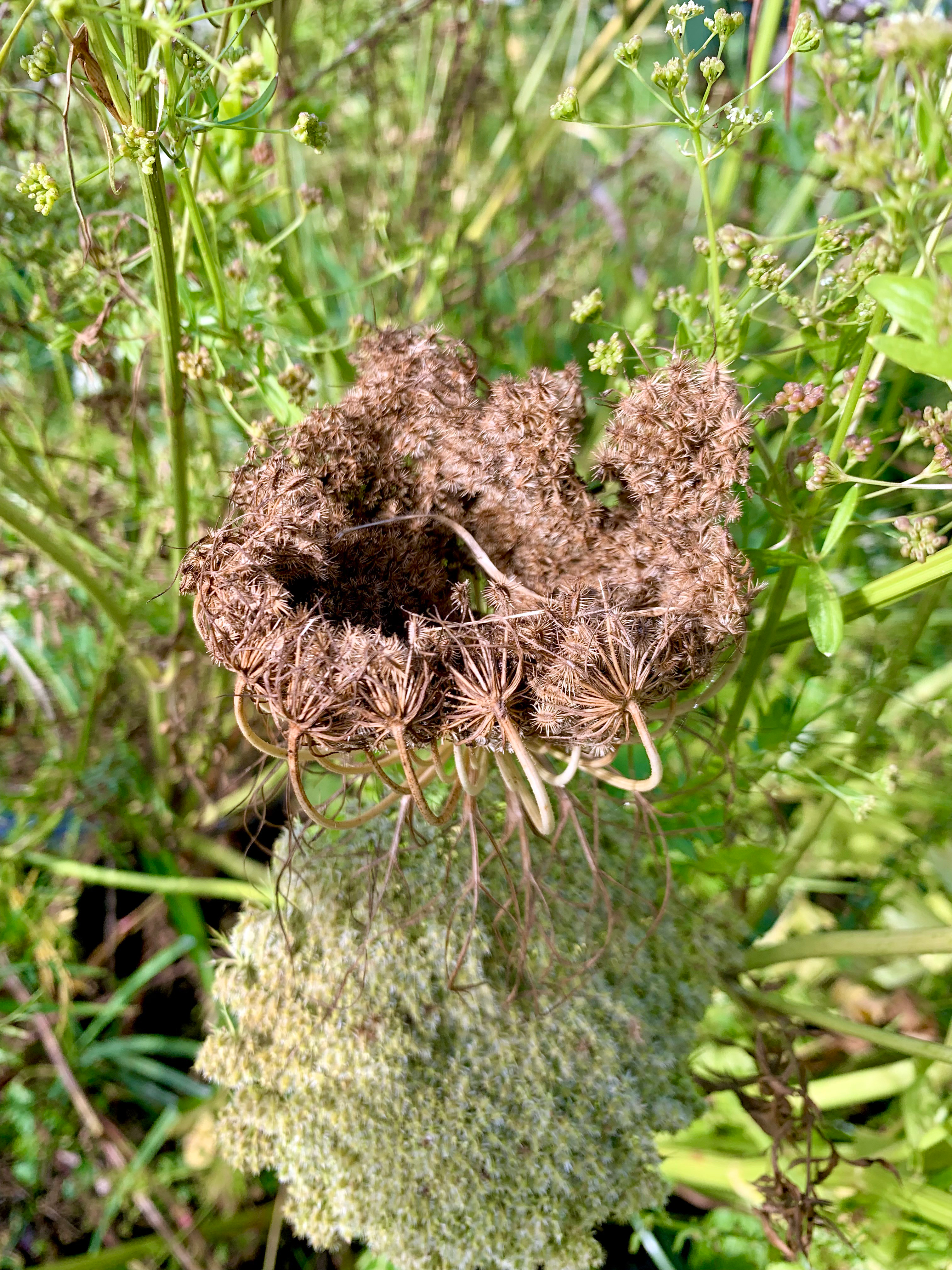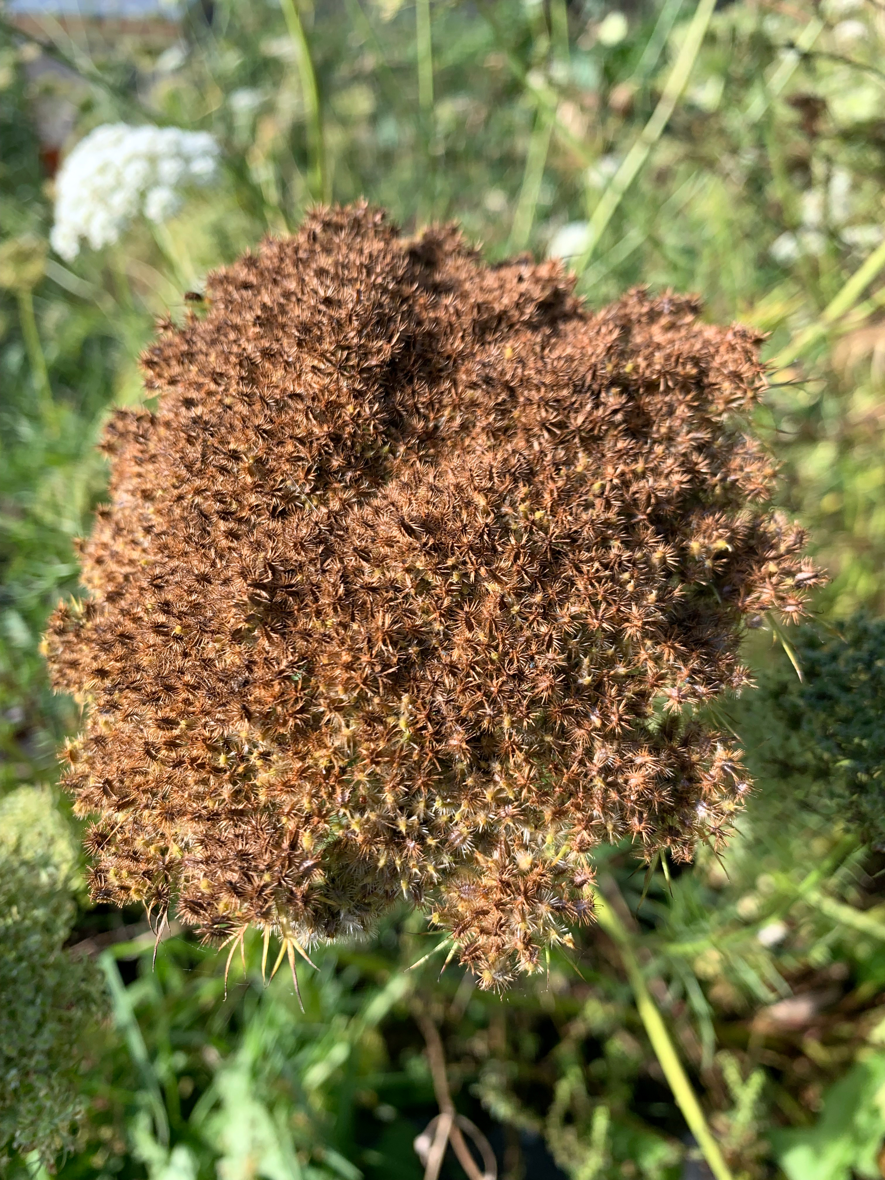 This months photos are of the various stages of ripeness of the umbel seed heads of Scarlet Nantes Carrots – Daucus carota subsp. Sativus. They show the progression of the flowers forming seeds and ripening in the sun. They are a bit late this year because we have been lacking sun especially in the upper mountains. At 38 days into the New Year of 2022 we have had 33 days of rain. Nantes carrots grow well in the mountains climate and form medium sized carrots that are shaped a bit like a tube rather that the classic pointed carrot shape. They have an excellent light carrot flavour, fine texture and red tinted orange flesh. The Nantes carrots were originally developed by the French seed company Vilmorin in the early 1850’s and were named after the city and region of Nantes in France. Carrots are a little tricky to save seed from as they are biennial which means they grow the first year, need a full winter rest when they die back to the root, and then they flower in the second summer and form seeds during that summer – so that’s a full 12-18 months before you get seed. But fresh home grown seed is ‘way better’ for germination when you grow your carrots in your home garden.