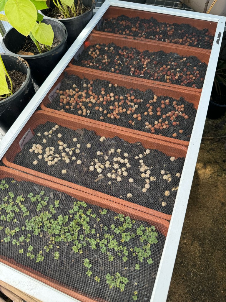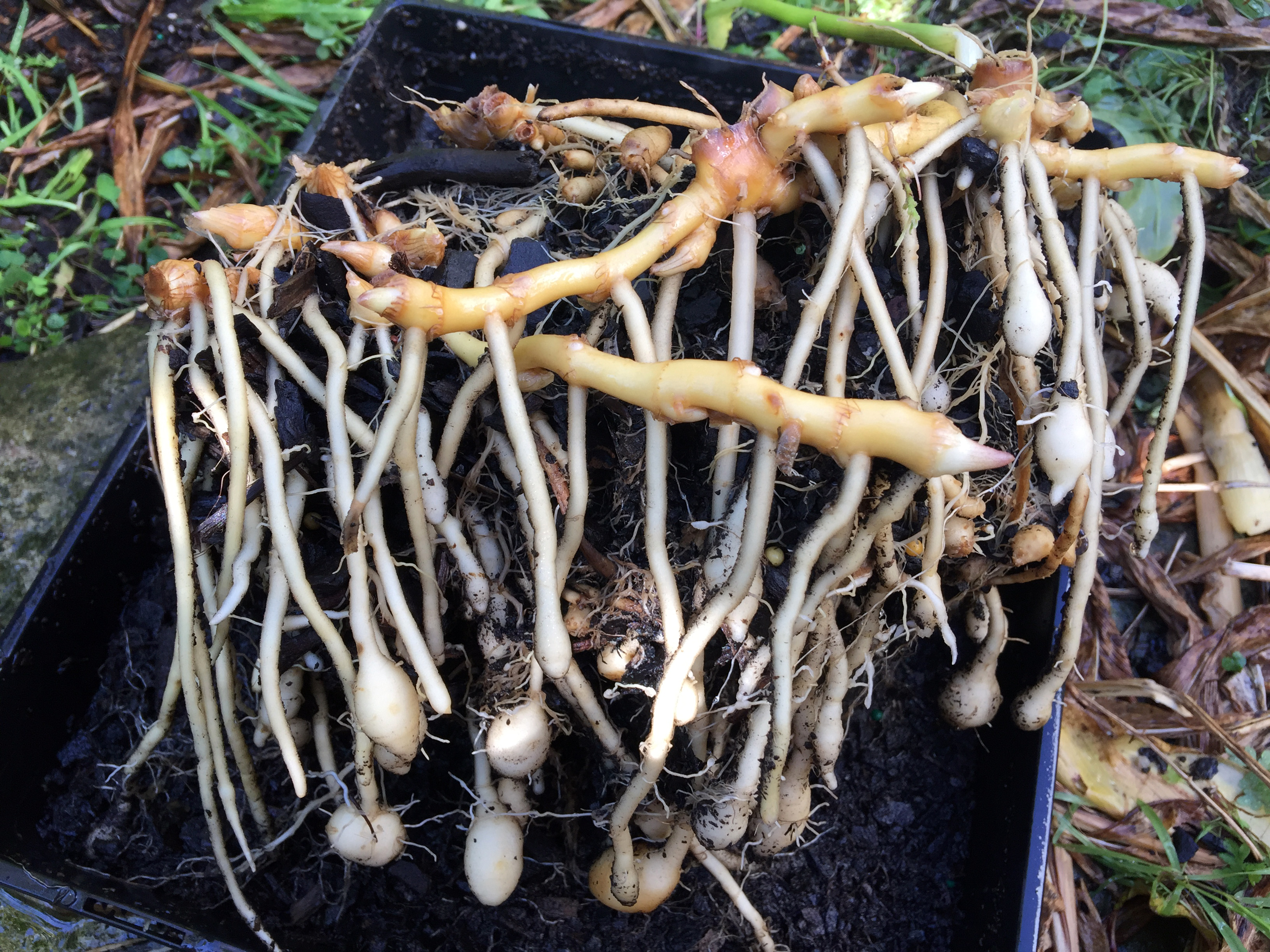 Spring has kind of ‘sprung’ for us finally here in the mountains. The soil temperatures are warming and the cold nights are dissipating. There is a lot of sun and new growth and it’s time to consider your seeds and what you want to eat by the end of the year. Along with carefully introducing your seeds and seedlings to the warming outside it’s a good time to get your warm temperature seedlings germinating inside on a window sill or in a covered structure. There are likely still seeds to be sorted and organised for growing on, plants that are resprouting that need propagating by cuttings and It’s also a good time to inspect some of your over wintered dormant root systems for health. You can see in one of the photos this month a healthy root system for a nice cold hardy Japanese variety of Mioga Ginger that is ready to come back into growth. This upcoming meeting we will be focussed again on the practical aspects of seed saving including harvesting, filtering/sieving and cleaning seeds along with packing and storage – and labelling. And as usual we will spend some time talking about the current seasonal planting and harvesting and swapping/packing seeds and swapping seedlings and cuttings between members.