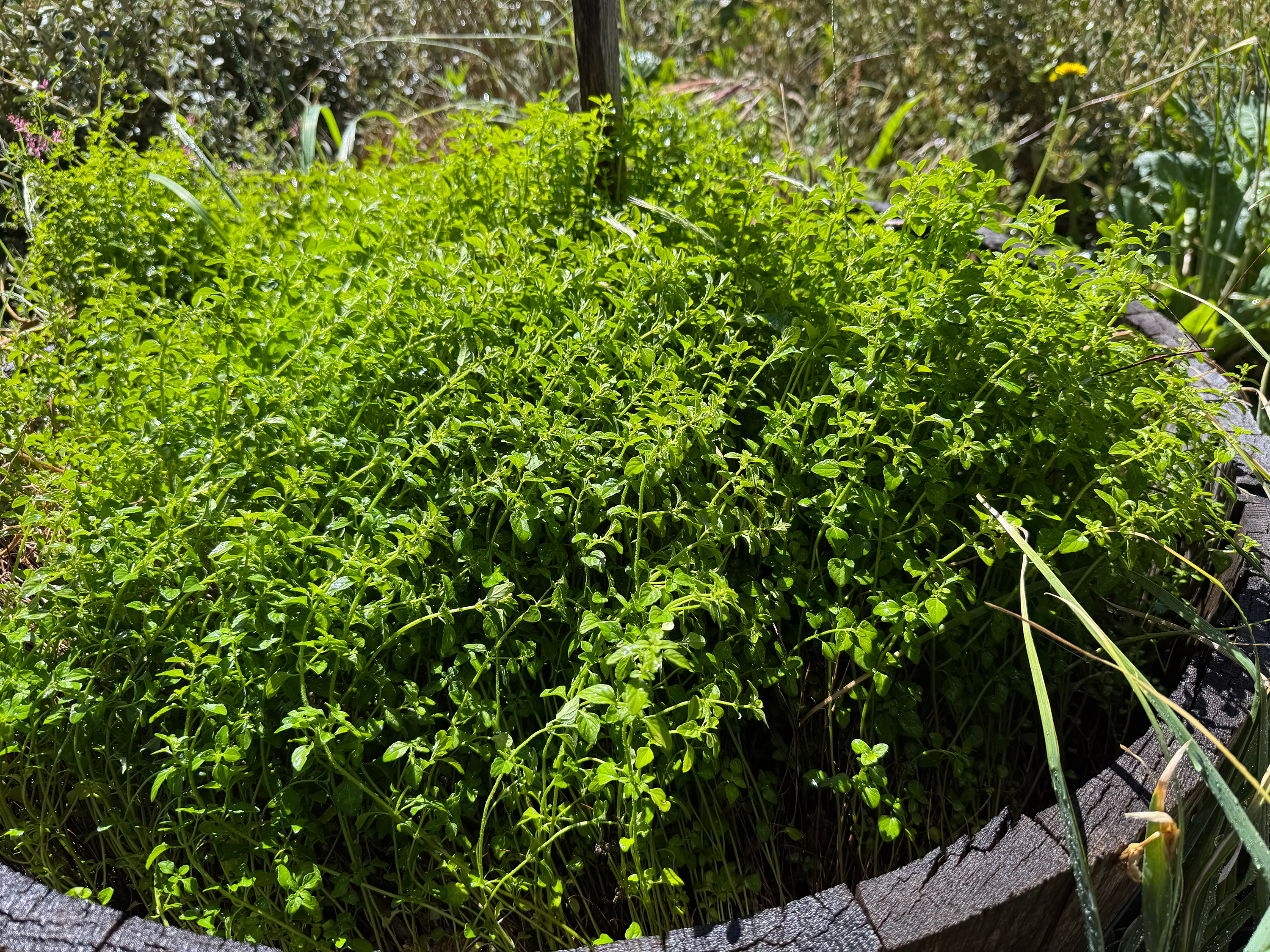 Well Summer is finally here for us in the Blue Mountains up high to the west of Sydney. It’s time to get all those seedings into the ground after the usual crazy weather during October and November. This weather pattern of wild swings from hot to cold and huge unexpected wind, hail and lightning storms is actually part of the normal expected annual weather pattern we get every year in the Blue Mountains. However we do now usually have a nice long stable growing season until around the end of May – so get those plants into ground! There will be plants right now starting to come back into strong growth that will surprise like the native peppermint shown in the photo that is growing along with some Warrigal greens (hardly visible currently) that is a welcome patch of tasty native herbage. Some plants will have produced seed during the late winter and spring that will have dried off and be ready to process like the fluffy ball of Salsify seeds sitting next to a few large stalks of purple sprouting broccoli shown here. These sorts of spring seeds can usually be germinated and grown on as summer warms up even more. And of course the plants that you grew from seed and carefully protected in various containers and structures while the crazy spring weather was pounding us with heatwaves and freezing overnight cold snaps can be finally put in the ground.