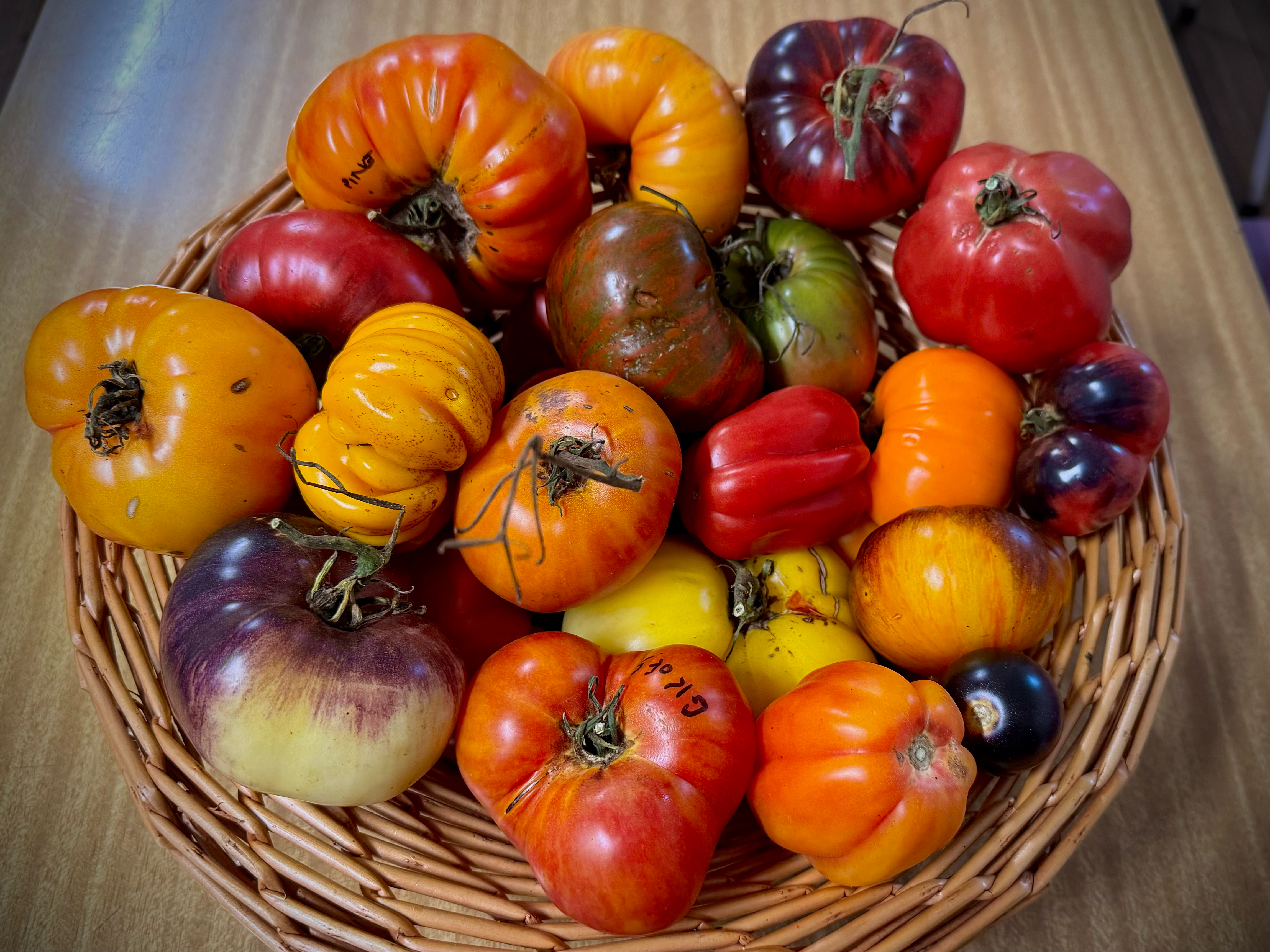 A photo this month of just a selection of the wonderful wide range of Tomato varieties one of our members has been growing this season – despite the challenging weather and animals. The photo was taken at our February meeting. This upcoming meeting we will be focussed on the practical aspects of seed saving including harvesting, filtering/sieving and cleaning seeds along with packing and storage – and labelling. And as usual we will spend some time talking about the current seasonal planting and harvesting and swapping/packing seeds and swapping seedlings and cuttings between members.